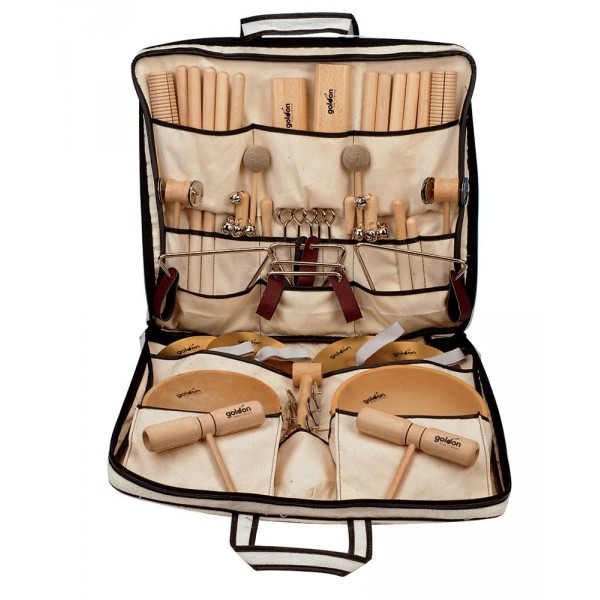 - velká, krémová taška plná perkusních nástrojů