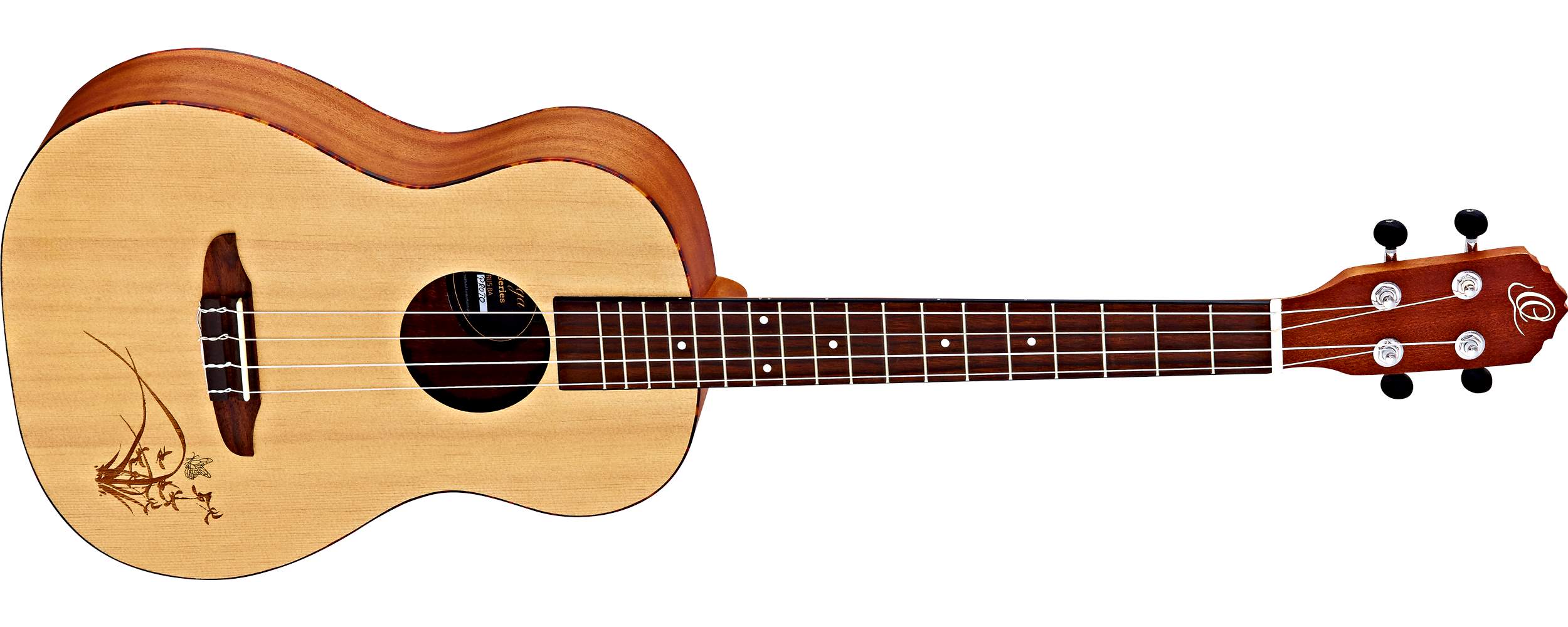 Vrstvený korpus barytonového ukulele RU5-BA je zhotoven z překližovaného smrku a zadní desky a lubů z laminovaného sapele. Přední desku zdobí laserová rytina, tělo obepíná lemovka z materiálu ABS. K mahagonovému krku přisedá ořechový hmatník osazený osmnácti pražci, orientaci po jeho ploše usnadňují poziční tečky. Struny jsou uchyceny v kobylce z ořechu a uzavřených ladících mechanikách kytarového typu (Die-Cast).