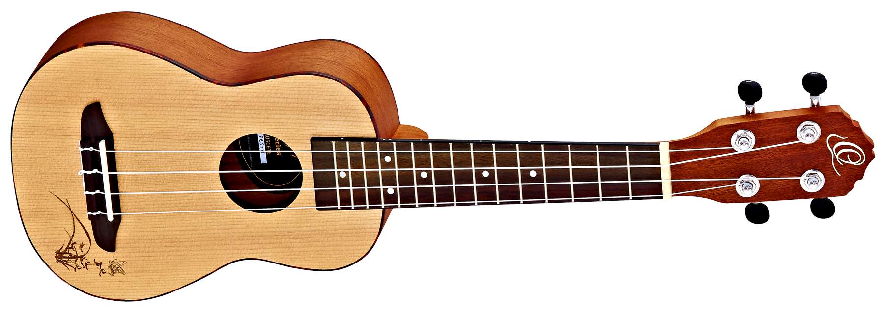 Vrstvený korpus sopránového ukulele RU5-SO je zhotoven z překližovaného smrku a zadní desky a lubů z laminovaného sapele. Přední desku zdobí laserová rytina, tělo obepíná lemovka z materiálu ABS. K mahagonovému krku přisedá ořechový hmatník osazený patnácti pražci, orientaci po jeho ploše usnadňují poziční tečky. Struny jsou uchyceny v kobylce z ořechu a uzavřených ladících mechanikách kytarového typu (Die-Cast).