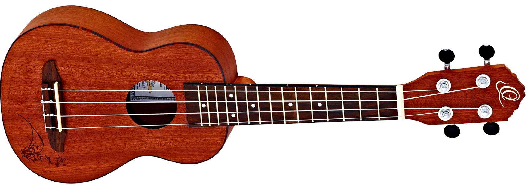 Tělo sopránového ukulele RU5MM-SO je zhotoveno z překližovaného sapele. Přední desku zdobí laserová rytina, tělo obepíná lemovka z materiálu ABS. K mahagonovému krku přisedá ořechový hmatník osazený osmnácti pražci, orientaci po jeho ploše usnadňují poziční tečky. Struny jsou uchyceny v kobylce z ořechu a uzavřených ladících mechanikách kytarového typu (Die-Cast).