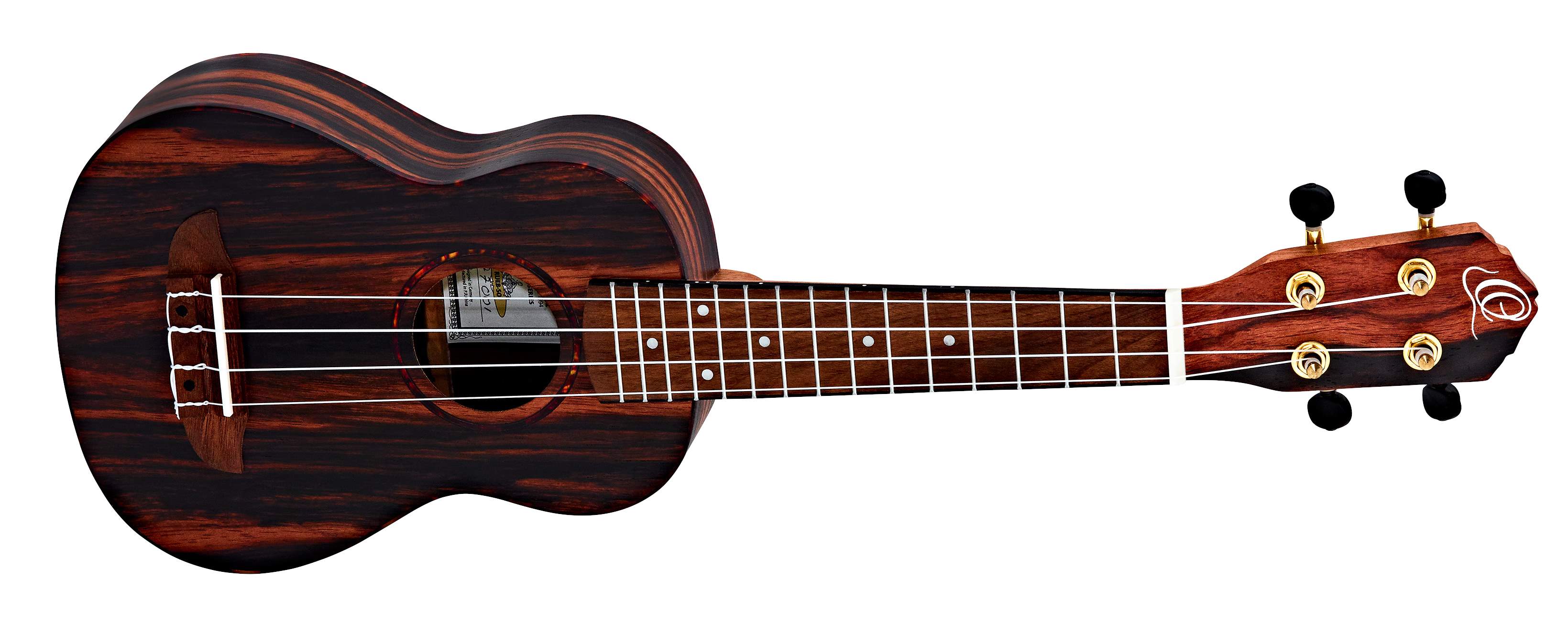 Tělo tohoto sopránového ukulele je vyrobeno z překližovaného ebenu. K mahagonovému krku přiléhá hmatník z ořechu osazený patnácti pražci a bílými pozičními tečkami. Struny jsou uchyceny v kobylce z ořechu a uzavřených ladících mechanikách kytarového typu (Die-Cast) ve zlaté barvě. Ušlechtilý vzhled podtrhuje lemovka a rozeta z imitace želvoviny.