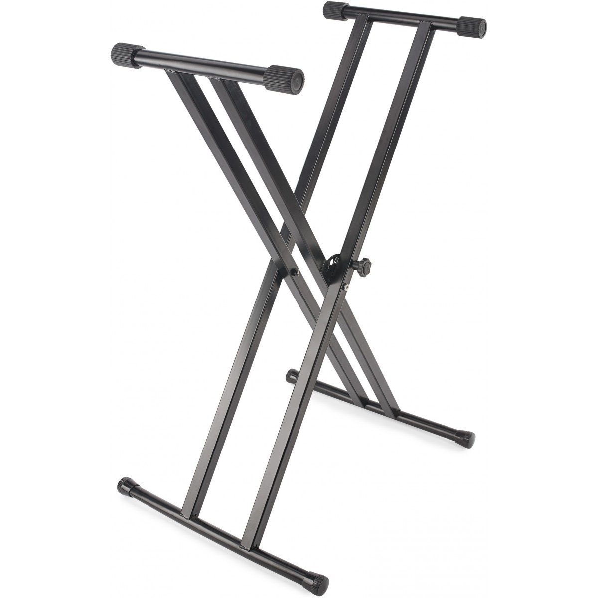 Dvojitý klávesový stojan, nastavitelná výška 65 - 98 cm v pěti polohách, maximální nosnost 40 kg, průměr trubky 25 mm, hmotnost 3,7 kg. Barva černá.