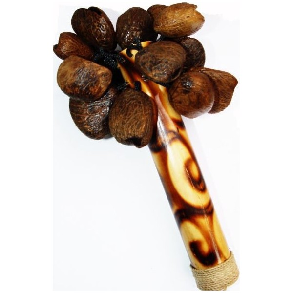 Rytmický hudební nástroj s madlem (zddobený bambus, ořech)