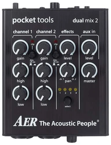 Dual Mix 2 je dvoukanálový předzesilovač. Nabízí jednoduché, ale efektivní funkce, podobné menšímu mixážnímu pultu. Konkrétně dva kombinované nástrojové/mikrofonní vstupy, samostatné dvoupásmové ekvalizéry s ovladačem gain, efektovou jednotku se čtyřmi zabudovanými efekty – dva efekty reverb, echo a chorus, výstup pro sluchátka, footswitch a stereo aux in vstup. Linkovým výstupem propojíte předzesilovač s dalšími zvukovými zařízeními, pomocí XLR DI výstupu pošlete signál přímo do mixu nebo nahrávací konzole. Předzesilovač lze napájet 24V adaptérem nebo 24V fantomovým napájením.