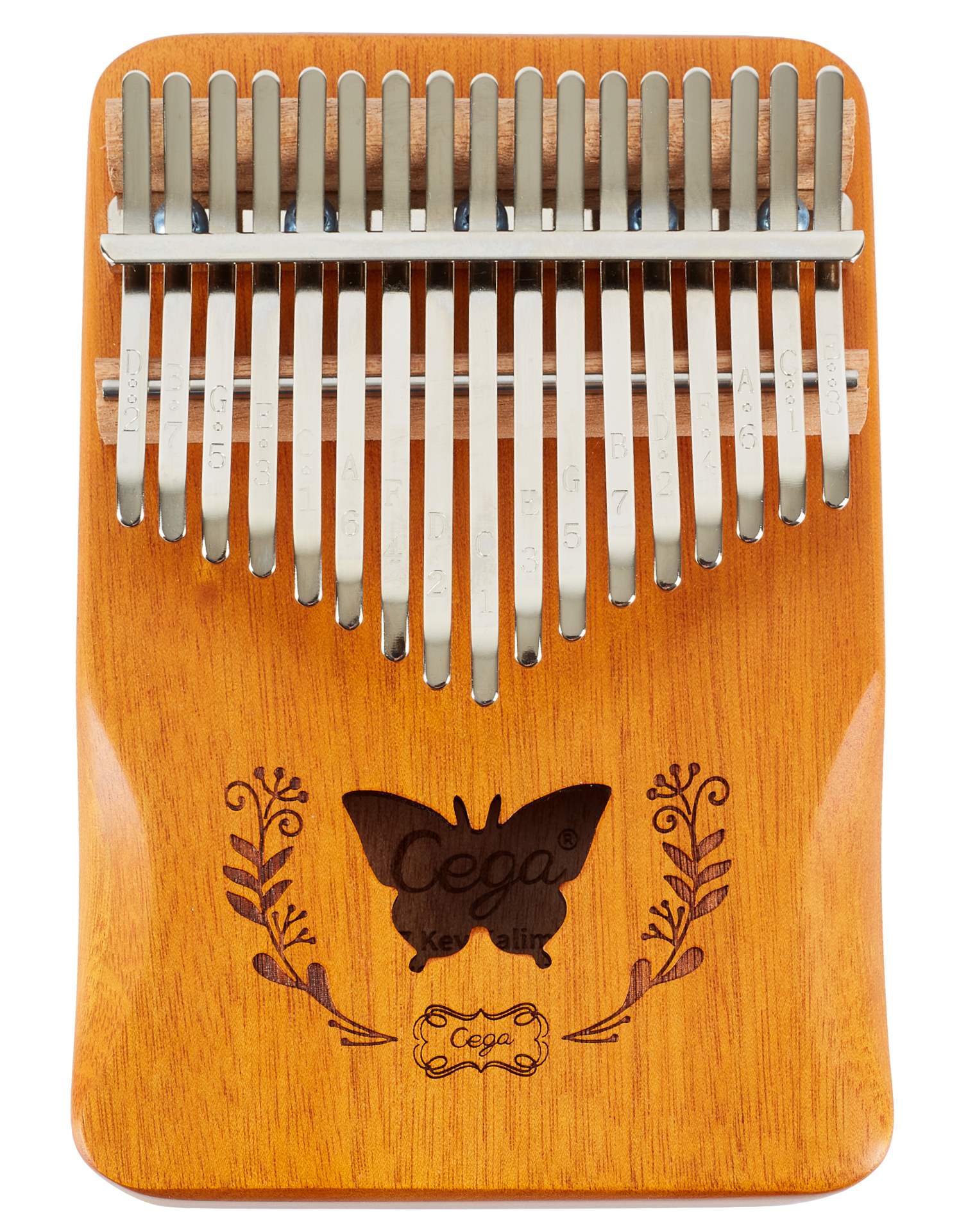 Kalimba je unikátní melodický nástroj, který přidá do vaší tvorby nebo live performance unikátní a nezaměnitelný prvek. Může sloužit k doprovodné nebo sólové hře. Kalimby od firmy Cega jsou vyráběny z kvalitních dřevin, sušených pouze přirozenou cestou, což jim poskytuje skvělé zvukové vlastnosti a maximální stabilitu. Tento model je vyroben z akáciového dřeva a vybaven ozvučnicovou dírou, která zvuku nástroje přidá na síle a hutnosti. Klávesy z karbonové oceli pak nástroji poskytují čitelný a hlasitý, avšak stále příjemně vřelý zvuk. Na klávesách najdete také vyryté tóny, což pomůže v orientaci zejména začínajícím hráčům.