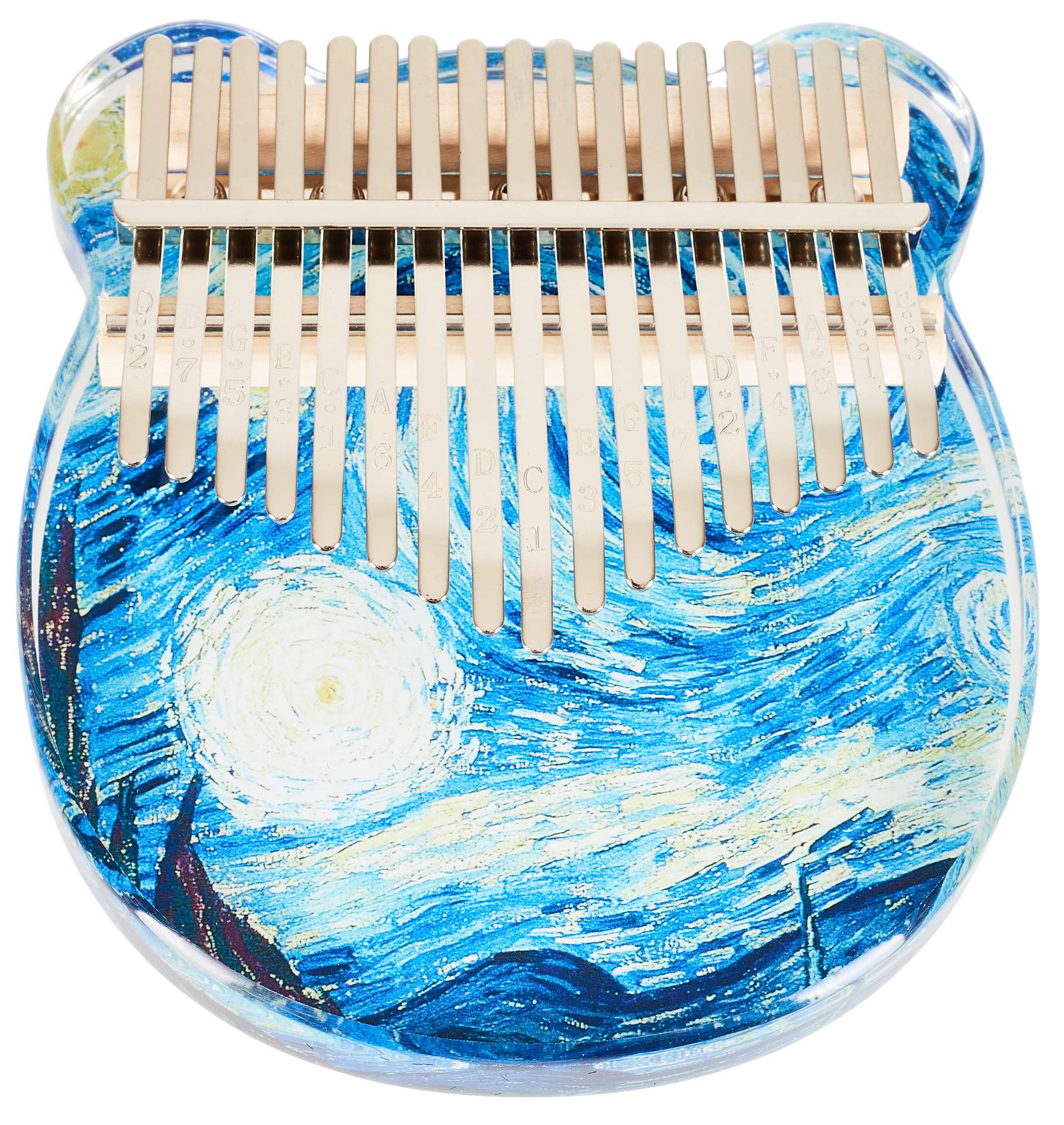 Kalimba je unikátní melodický nástroj, který přidá do vaší tvorby nebo live performance unikátní a nezaměnitelný prvek. Může sloužit k doprovodné nebo sólové hře. Tento model je netradičně vyroben z průhledného akrylu, který je velice odolný a poskytuje skvělé zvukové vlastnosti. Klávesy z karbonové oceli pak nástroji poskytují čitelný a hlasitý, avšak stále příjemně vřelý zvuk. Na klávesách najdete také vyryté tóny, což pomůže v orientaci zejména začínajícím hráčům.