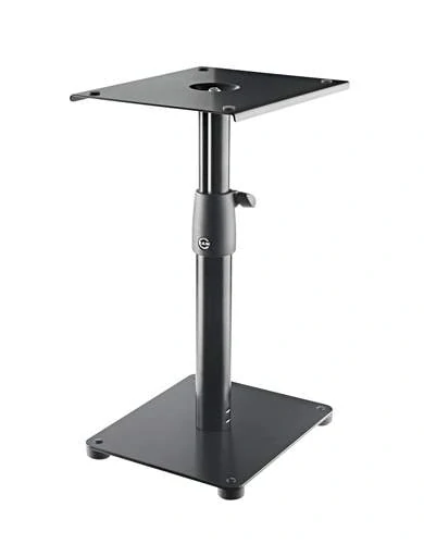 Robustní výškově nastavitelný stojan vhodných pro studiové monitory a reproduktory. Stojan je vyrobený z odolné oceli a disponuje robustní základnou pro umístění na stůl nebo skříň. Na stojan můžete připevnit většinu monitorů na trhu, je tak vhodný pro nahrávací studia, ale jistě ho oceníte i ve vašem domácím kinu, zkušebně nebo v kanceláři. Distanční tyč můžete nastavit do šesti různých výškových pozic. Deska o rozměrech 205 x 245 mm vám umožní nastavit směr proudění zvukového signálu tak, aby vašemu uchu nic neuniklo. Součástí balení je čtveřice gumových padů pro stabilní a čistý zvuk bez vibrací.