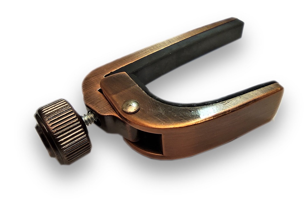 Kytarový kapodastr se šroubovacím mechanismem uchycení. Kapodastr je určený pro akustickou kytaru. Povrchová úprava metalickým lakem nebo chromem a vintage designem.